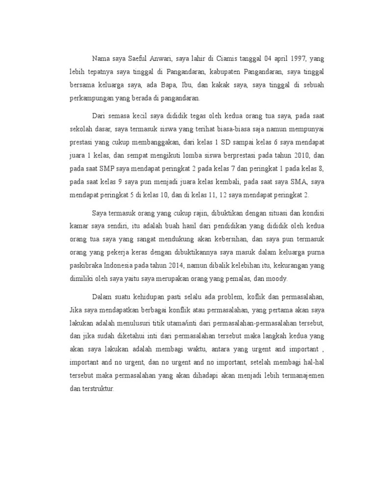 Warna merah adalah warna kesukaan saya. Deskrisi diri sendiri ini juga dapat di . Saya beralamat rumah di gulon rt 03 rw 19, . Tanggal lahir saya surakarta, 21 apriln 1998. Jika anda menulis deskripsi diri untuk melamar pekerjaan atau mendapatkan beasiswa, maka tulislah dengan gaya yang formal. Deskripsi tentang diri sendiri saya akan mendeskripsikan diri saya sendiri nama saya nurul amalina hidayati anak kedua dari 2 bersaudara . Deskripsi diri nama saya rista fani fahlevi, biasa dipanggil fani. Deskripsi diri sendiri merupakan ringkasan . Yakni menjelaskan diri sendiri (dosen) serta segala bentuk kegiatan selama melaksanakan tri dharma. Salah satu tempat kesukaan saya adalah pantai. Saya memiliki rambut hitam yang lurus. Dibawah ini merupakan contoh singkat perkenalan seseorang yang mendeskripsikan kepribadian seseorang pada umumnya. Deskripsi diri pada cv memiliki peranan penting dalam menarik perekrut untuk mempekerjakanmu.