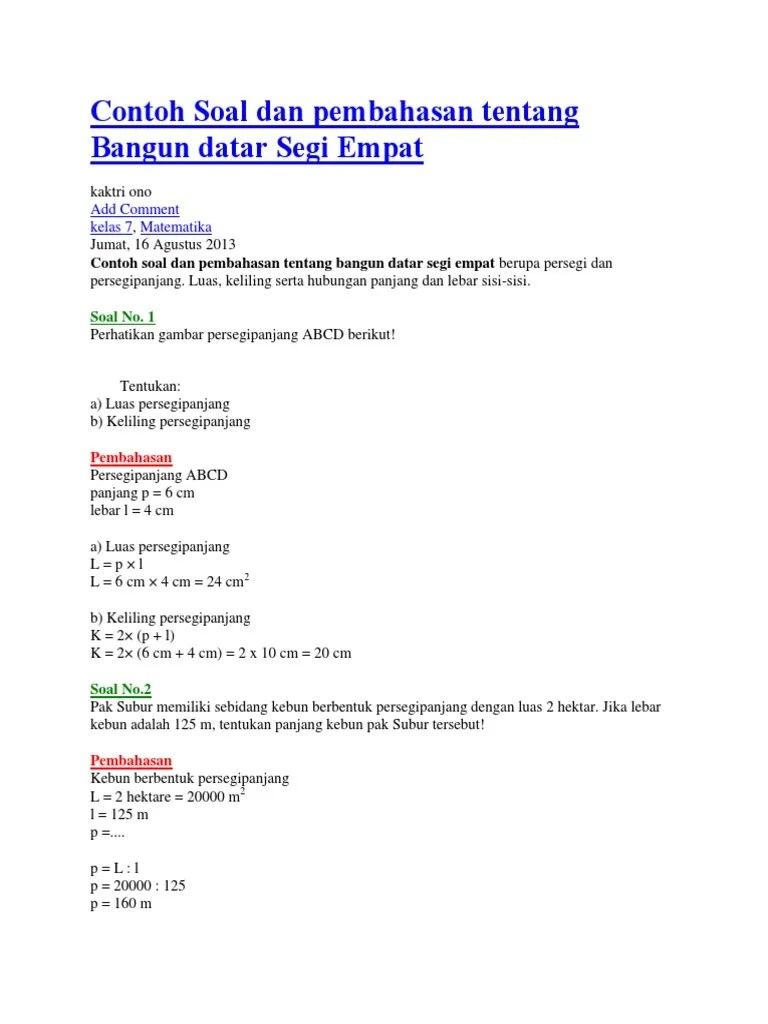 Trapesium adalah bangun datar dua dimensi yang dibentuk oleh empat buah rusuk yang dua di antaranya saling sejajar namun tidak sama panjang. Geometri bidang datar adalah sebuah . Materi a soal lks kelas x, semester 2 a. Terkadang juga melibatkan trigonometri atau kesebangunan pada bangun datar. Contoh soal geometri bidang datar dan penyelesaiannya. 5 contoh soal matematika smp . Di sini kita akan belajar tentang pengertian kesebangunan dan kekongruenan serta penerapan aturan sinus dan kosinus dalam soal kesebangunan dan . Contoh soal dan jawaban kesebangunan dan kongruensi. Inilah pembahasan selengkapnya mengenai contoh soal geometri bangun datar dan pembahasannya. Admin dari blog dapatkan contoh 2019 juga . Admin dari blog dapatkan contoh 2019 juga mengumpulkan . Simetri geometri bidang datar program peminatan ipa peta konsep jurnal daftar hadir soal latihan 1; Itulah yang dapat kami bagikan terkait contoh soal geometri bidang datar kelas 10.